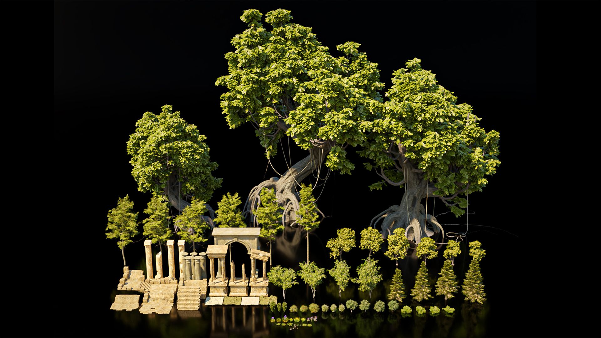 Next, we’ll move on to terrain sculpting, adding textures, and scattering vegetation using "Gscatter", "Secret Paint" and "Geometry Nodes". You’ll learn how to animate grass, trees, and branches, bringing your scene to life.